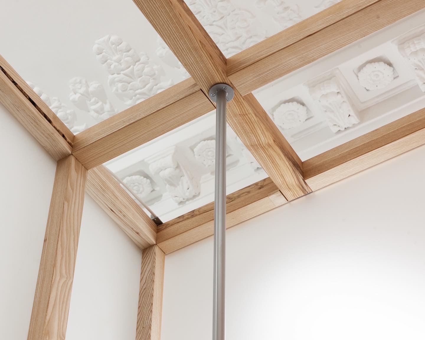 From the industrial-style Paper Boy café to a modular retail space, a hidden blue room, and an exhibition area, we designed a path reminiscent of an art gallery. Imagery and fabric coexist in perfect harmony. A modular wooden structure serves as the central element of the setup, designed to be playful and adaptable to the showroom’s future needs.